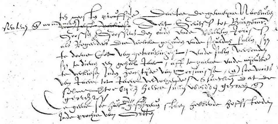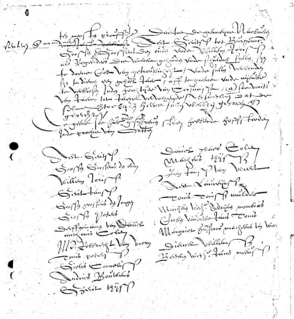 Door behoorlyke convocatien aan nabeuren gedaan over zaaken het dorp conserneerende zoo is eerst en voor al door de grootste meerderheyd van nabeure besloten.